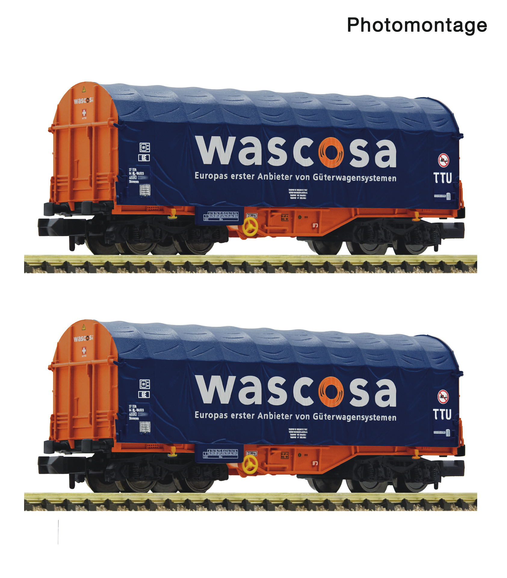 Wagenset bestehend aus zwei Schiebeplanenwagen, Gattung Shimmns, der Wascosa.