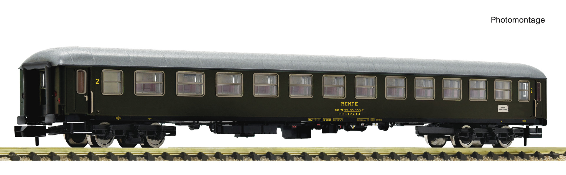 SchnellzuGüterwagenwagen 2. Klasse, Bauart UIC-X, Gattung BB, der Spanischen Staatsbahn.